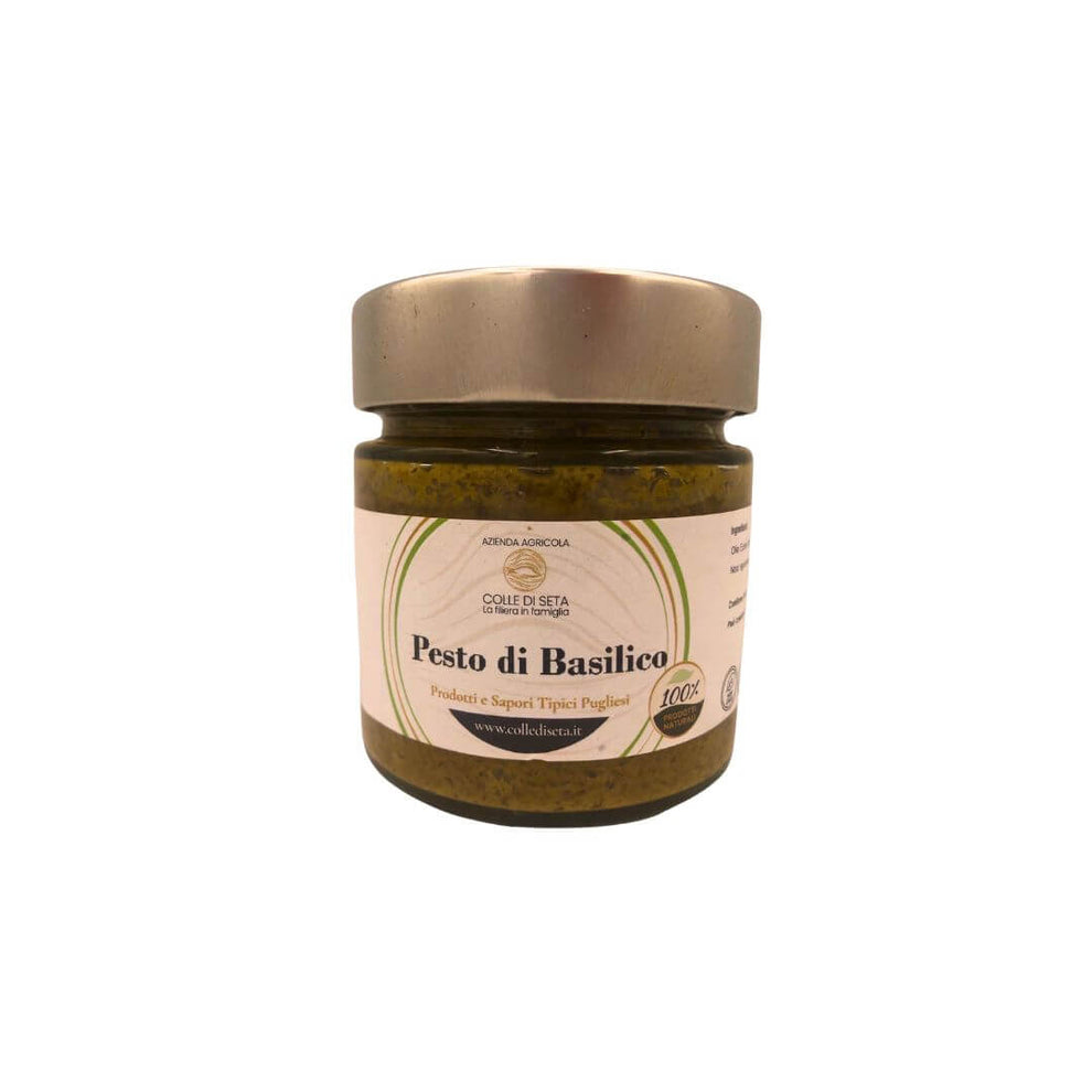 Prodotto ottenuto dalla fine omogeneizzazione delle foglie del nostro basilico con il nostro Olio Extravergine di Oliva e una selezione di frutta secca.