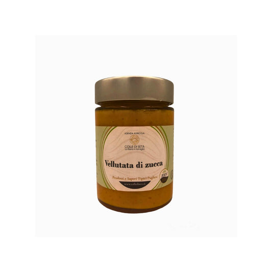 Una vellutata ottenuta dalla combinazione delle nostre zucche autunnali con la patata. Si caratterizza per una consistenza cremosa e un gusto elegante, grazie anche all'aggiunta di un pizzico di noce moscata. Condimento per pasta ma anche crema spalmabile per la preparazione di antipasti ed aperitivi.