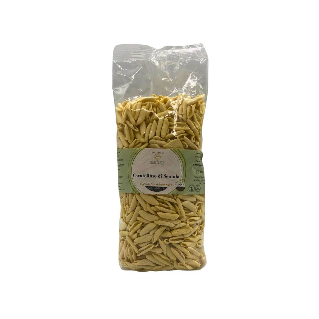 Cavatelli ottenuti dalla lavorazione della nostra semola. Essiccati a bassa temperatura e trafilati al bronzo, conservano la rugosità superficiale che consente di legarsi al sugo ed insaporirsi al meglio.